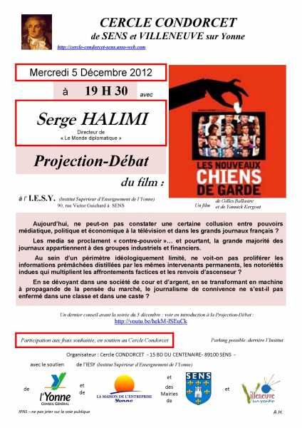 - participation aux frais souhaitée, en soutien au Cercle Condorcet