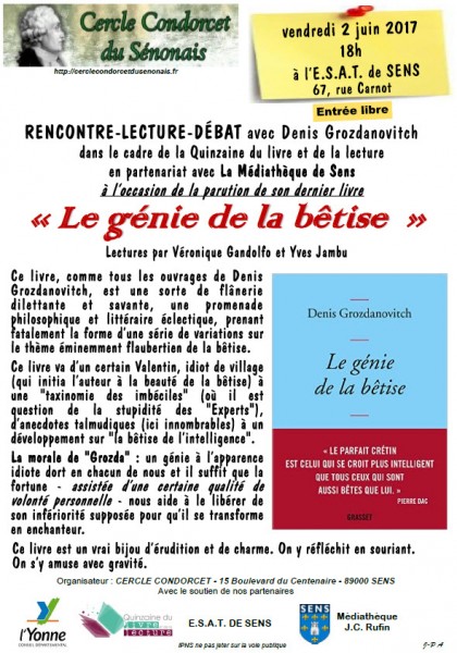 "Le génie de la bêtise" Extraits lus par Véronique Gandolfo et Yves Jambu le 2 juin 2017