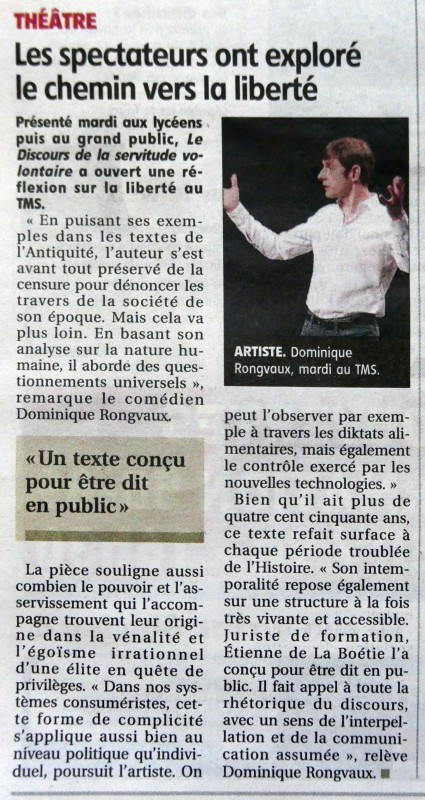 Texte flamboyant, prophétique et emblématique, le Discours de la servitude volontaire, écrit par un jeune homme de 18 ans, reste énigmatique comme un diamant noir. Il servira tour à tour d’étendard et de référence aux calvinistes, aux révolutionnaires de 1789, aux anarchistes, aux résistants. Il reste aujourd’hui encore d’une terrible actualité. La méfiance qu’il préconise vis-à-vis de tous les pouvoirs nous interpelle. La célèbre « Soyez résolus de ne plus servir et vous voilà libres » n’a pas fini de résoner à nos oreilles comme une mise en garde ou un encouragement face à nos doutes, nos complaisances et peut-être nos lâchetés.